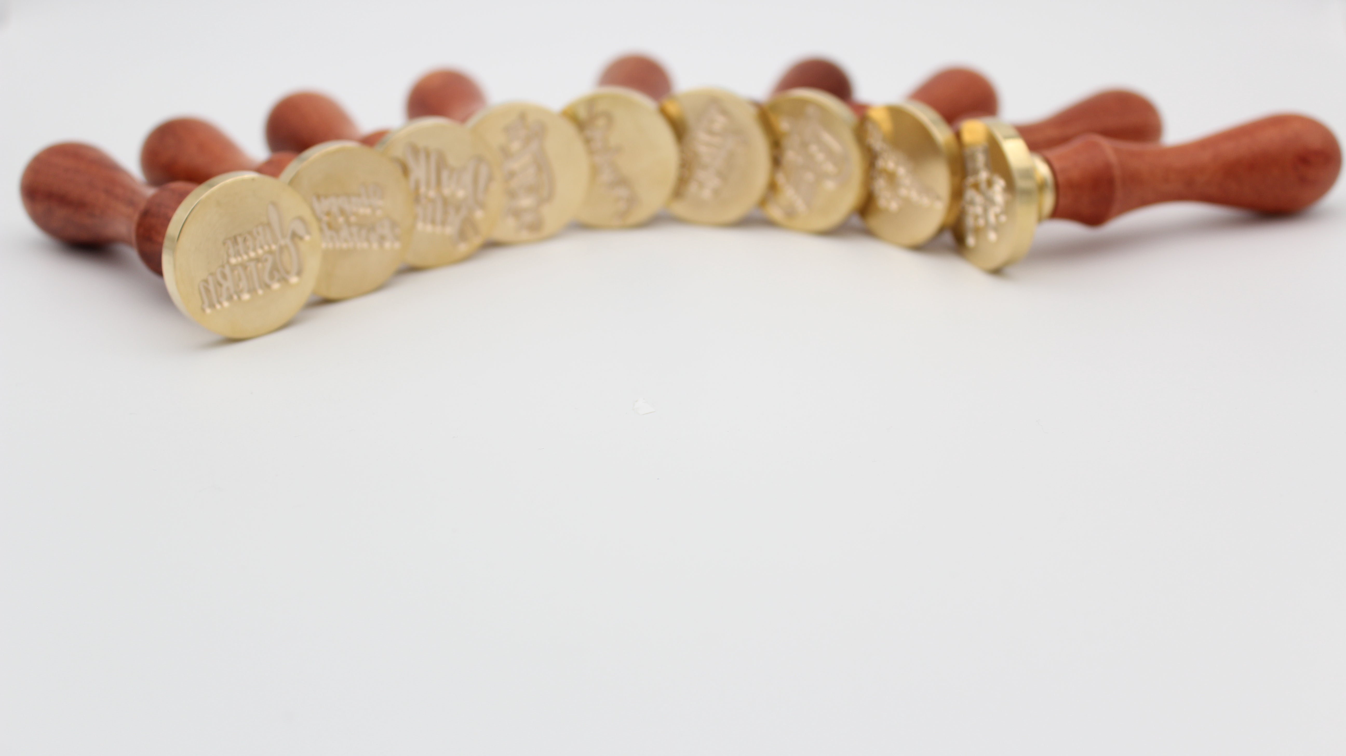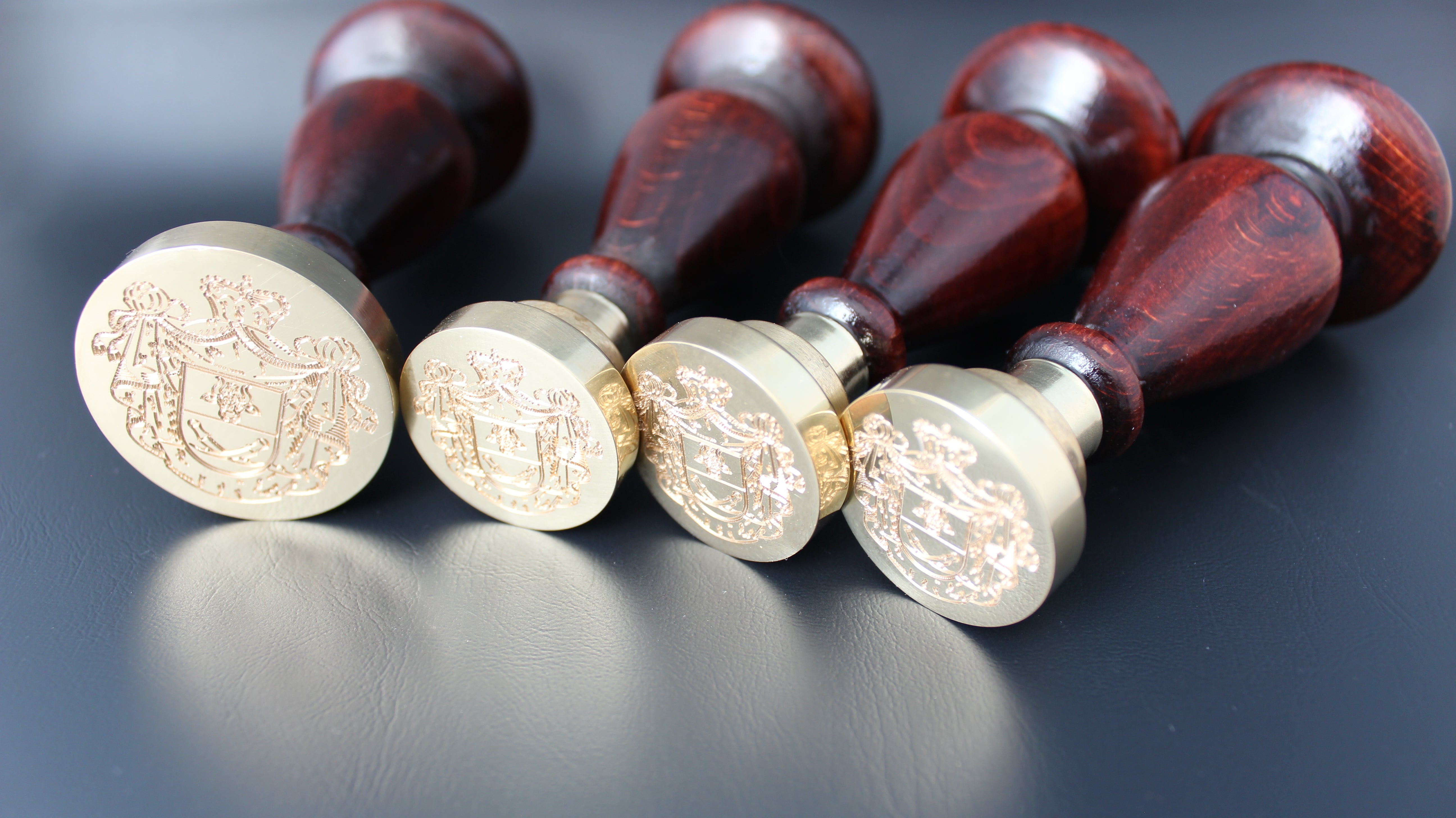 Unsere hochwertigen Siegelstempel werden in deutscher Werkstatt aus massivem Messing angefertigt und mit einem klassischen Holzgriff ausgeliefert.